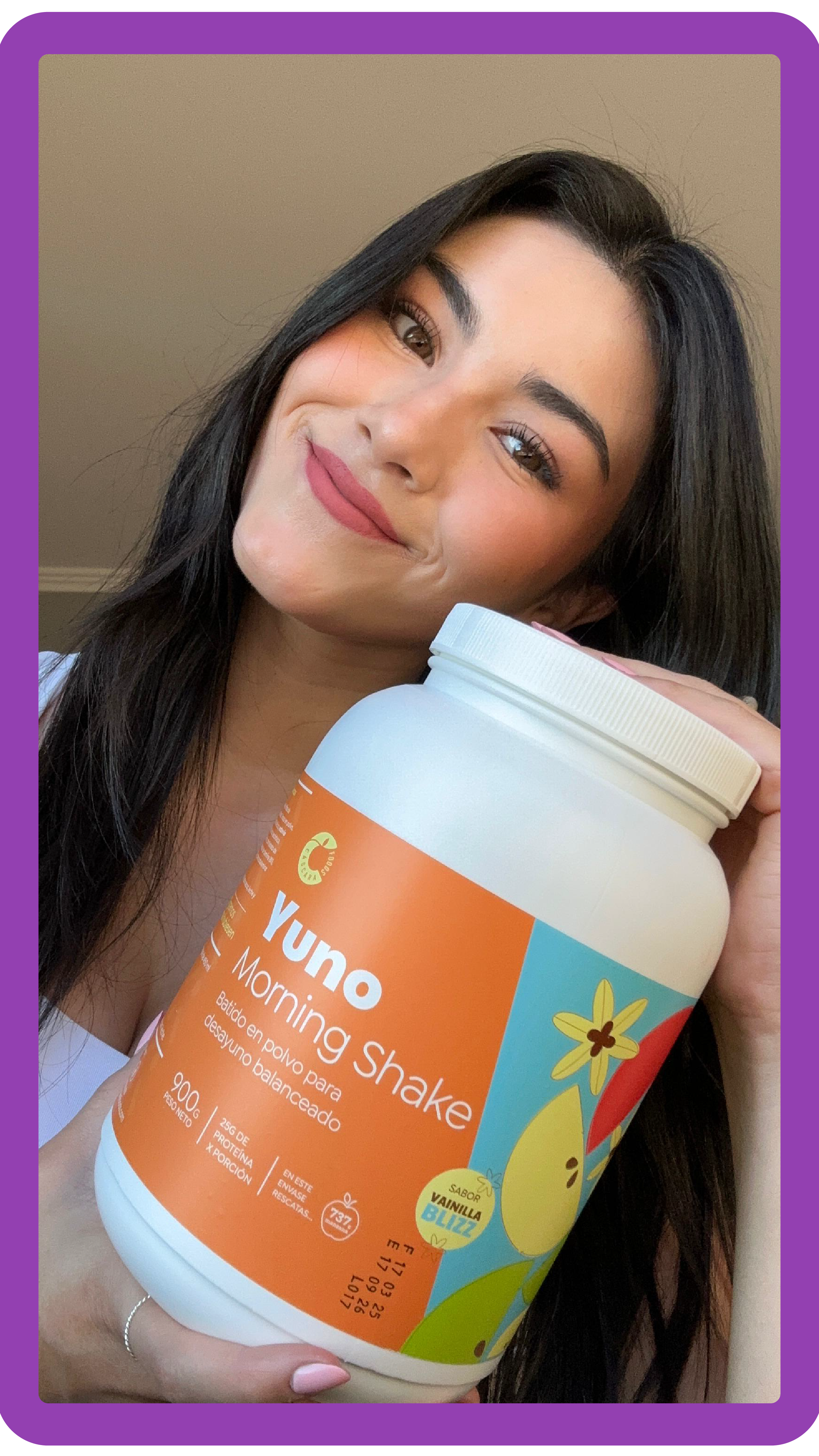 Yuno Morning Shake: Aporta más de 25 gramos de proteína, 18 vitaminas y minerales y 11 gramos de fibra. Batido formulado a base de de proteínas vegetales, avena y fibra prebiótica. Complementado con mix de vitaminas.